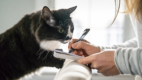 Wählen Sie „Hund" oder „Katze" und geben Sie dann den Namen des Produkts, die EAN oder die Artikelnummer ein. Wenn Sie nicht sicher sind, wo diese Angaben zu finden sind, hilft Ihnen dieser Leitfaden.